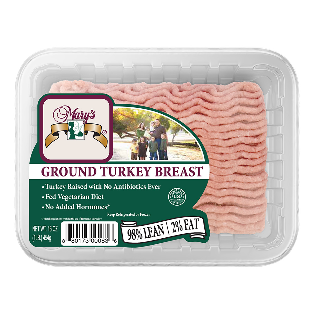 Mary’s Ground Turkey Breast is 98% fat-free and packed with lean, clean protein you can feel good about. Its tender texture and mild flavor make it the perfect base for your favorite meals — from spicy turkey tacos to juicy burgers fresh off the grill.